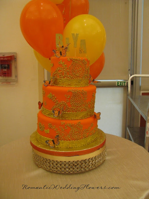Last year I designed flowers for a beautiful baby shower at the tearoom. (See post here) It's hard to believe a whole year has gone by, but recently I had the pleasure of designing for the little girl's one year birthday party! The theme was Monarch butterflies, orange and gold. I love, love, love these colors and I found a new favorite, the Coral Reef rose.